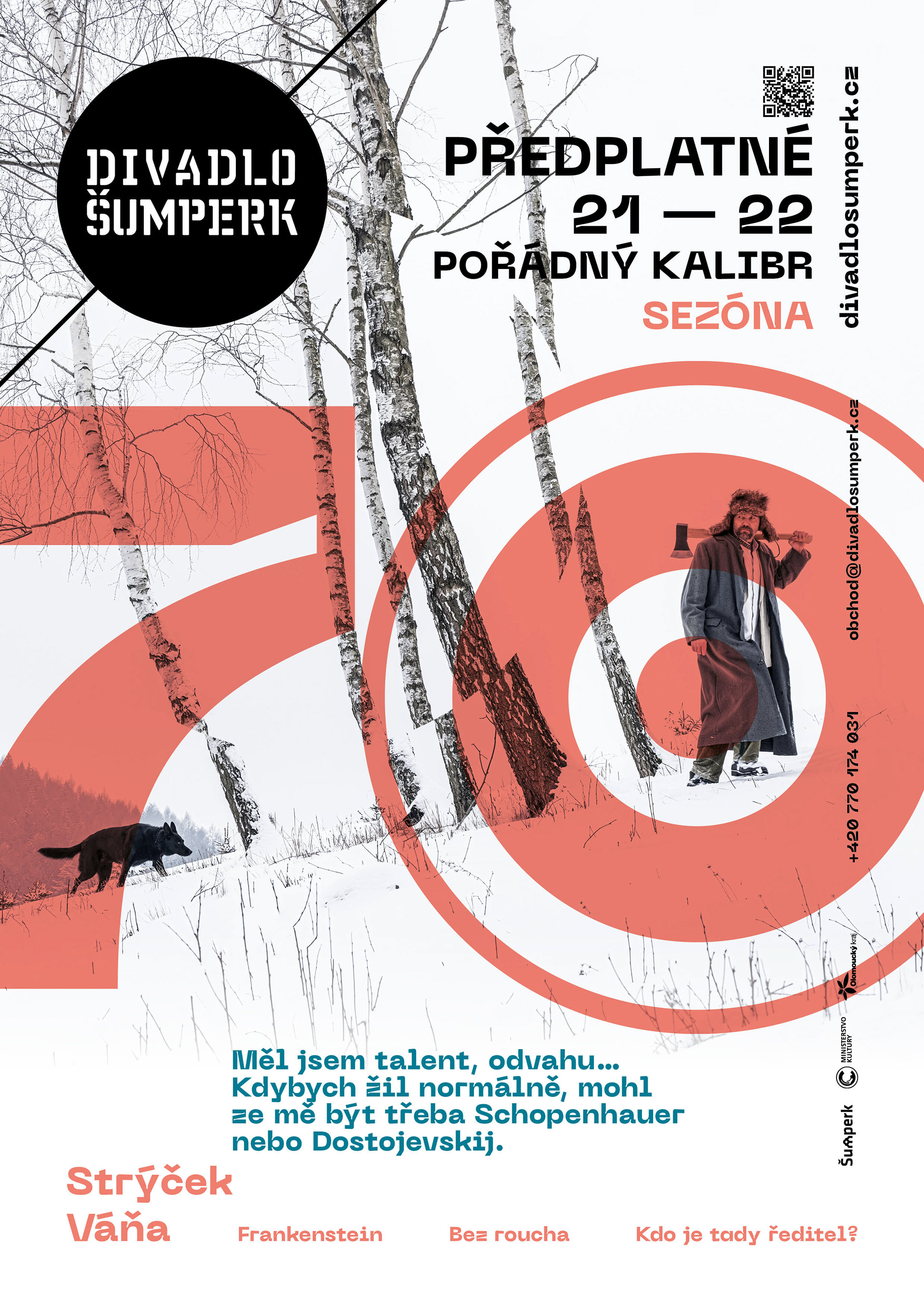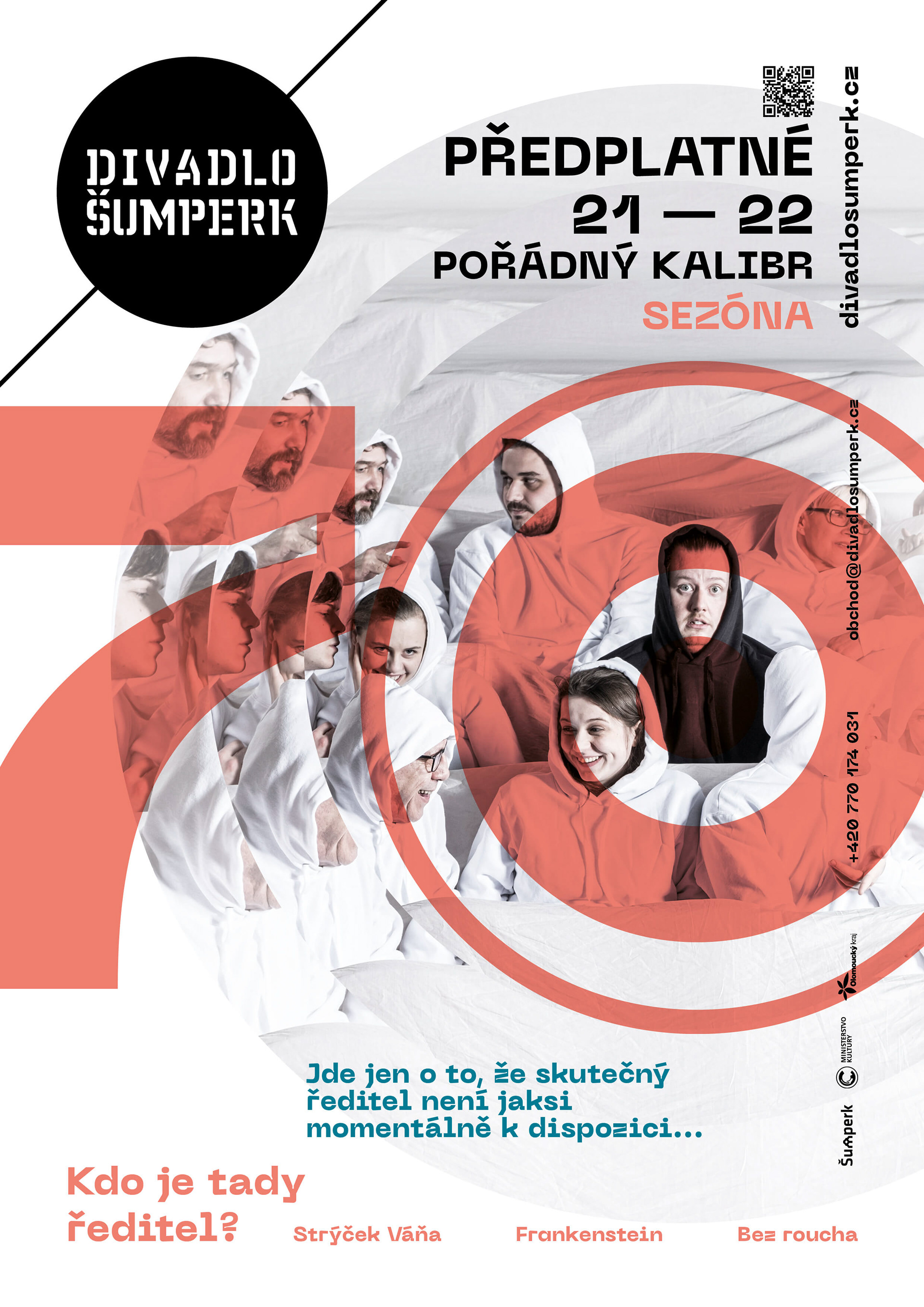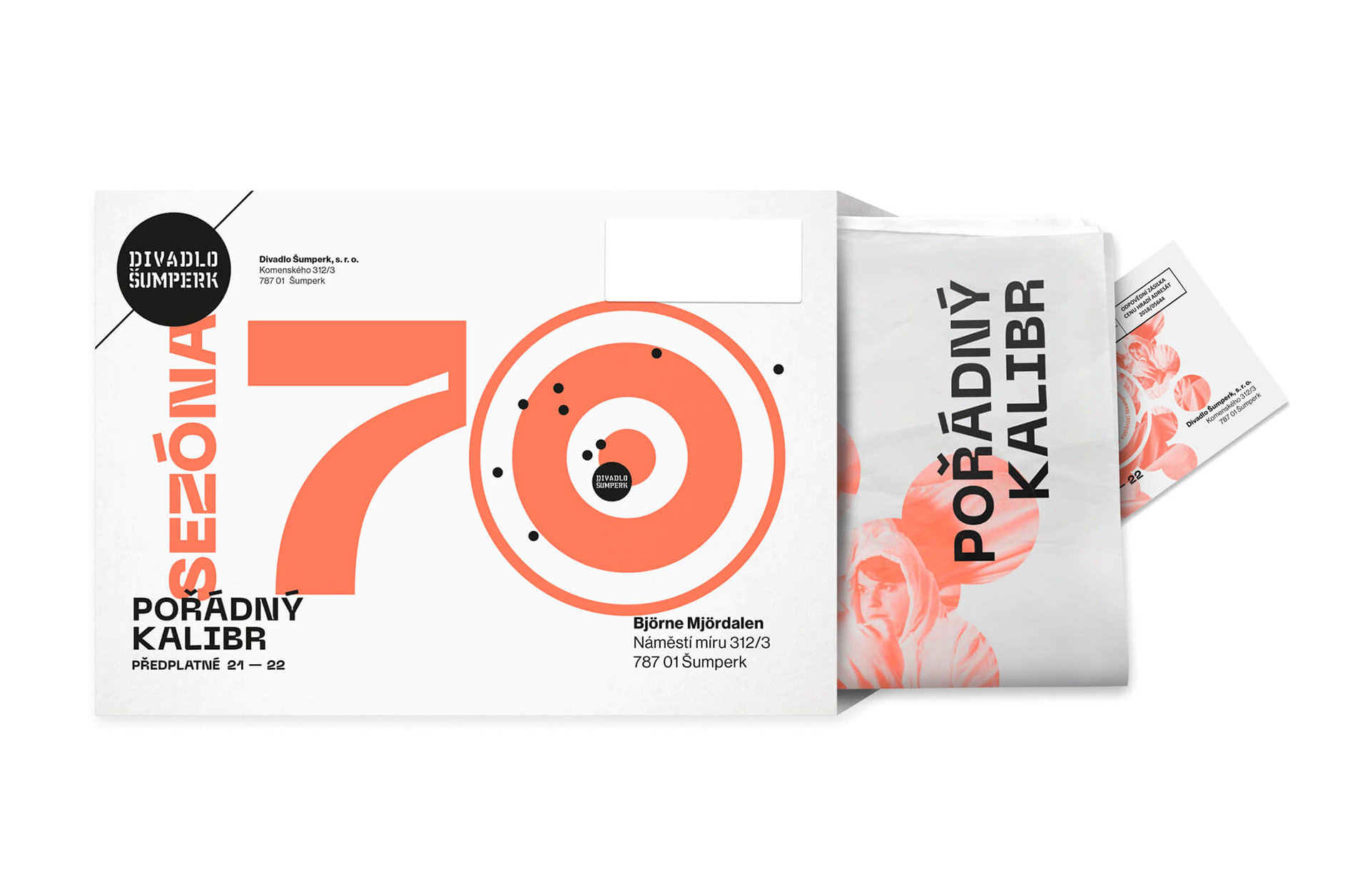 70. sezóna Divadla Šumperk s podtitulem Pořádný kalibr. Noviny, programy, plakáty a vizuální styl. Almanach k sedmé dekádě působení divadla. Před divadlem za divadlem nikdo nesmí stát, nebo nebudeme hrát.